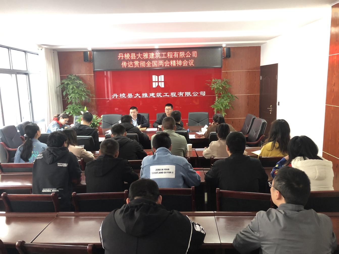 近日,丹棱縣大雅建筑工程有限公司召開傳達(dá)貫徹全國(guó)兩會(huì)精神會(huì)議,公司董事長(zhǎng)主持會(huì)議,全體黨員和干部職工參加。